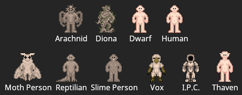 The following species can currently be selected in the character creation menu, meaning you can expect to see most of them during any given round.